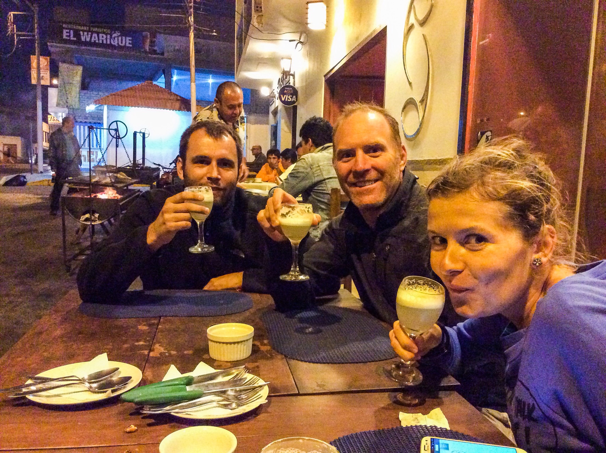 Food time. We have had our sights on ceviche (cured fish common in this part of the world) and with a quick tip from the hostel we venture out to bring this longest of days home with a bang. And holy crap what a first meal in Peru. What could possibly offset this horror of this day better than the most amazing ceviche we’ve ever had, seafood soup and freshly caught sea bass barbecued over blazing coals on the street right in front of us. Our mouths are watering and our belies are thankful, while desperate hunger does bias the judgement this fish is possibly the best fish we’ve ever had, outstanding. We also sate our developing alcoholism with the national drink, Pisco Sour, and does that go down a treat, we need panty liners immediately.