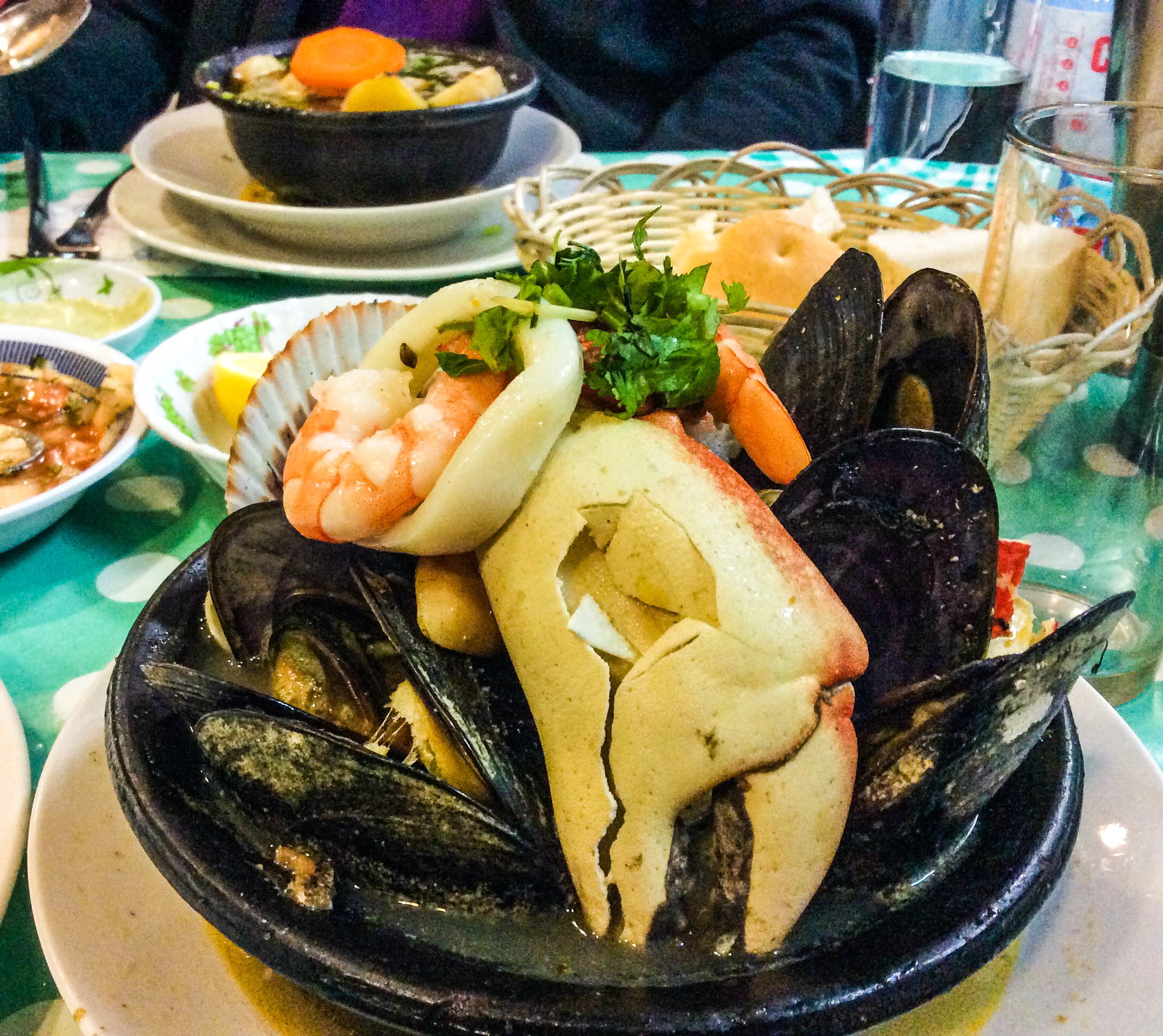 Another gem we have found is some of the most heavenly fish stews and soups to grace a bowl in front of us. Overflowing doesn’t begin to describe the manner in which the seafood bursts over the rustic traditional bowls that are lifted straight from the stove top and onto our table. In a busy fish market in Santiago city centre we absorb the flavours and scents to the backdrop of hurried bargaining, a salty fresh sea smell and chaotic energy. The food is to die for and the atmosphere is what we live for, it’s authentic, local, fresh and joyfully simple, exactly what anyone could possibly hope for eating at home or abroad. And just for nostalgias sake again in Santiago we’ve had the lamb chops, they come out on a plate with nothing else, just a big pile of meat. These little slabs of heaven don’t need a supporting act, they’re seasoned to a salty perfection embodying all that can be so wonderful about a nice piece of meat treated well.