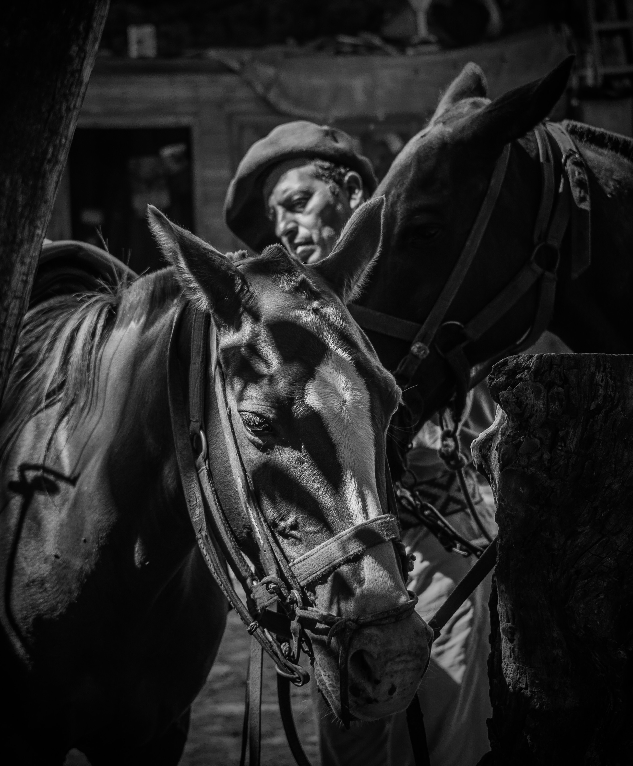 This ideal slips into the frame of what we see here, traditions are simple, firmly held and nurtured with no small slant of romanticism. Evidenced by the endless work done with the horses; what might seem like playing and trickery forms part of being a gaucho, an expression of prowess akin to a university degree or a sporting ability. Not just riding but being skilled in all matters of horsemanship is a well of pride and identity, even to the casual observer this becomes obvious. The tilted beret, the fine cotton shirt, baggy trousers and the delicate small slippers seem to be the uniform, all suave cowboy dash hiding a calm, confident shyness that belies the latin stereotype.