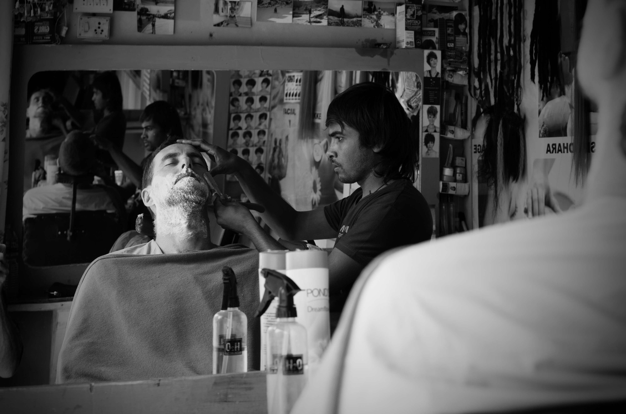 Steve braving the cut-throat razor, Pokhara