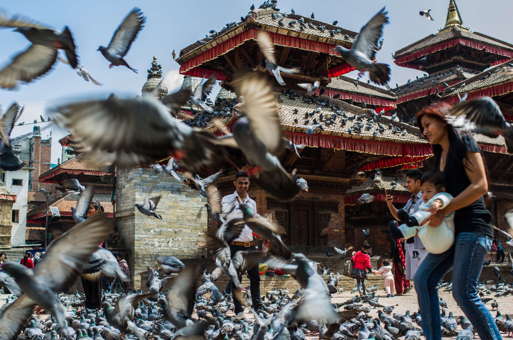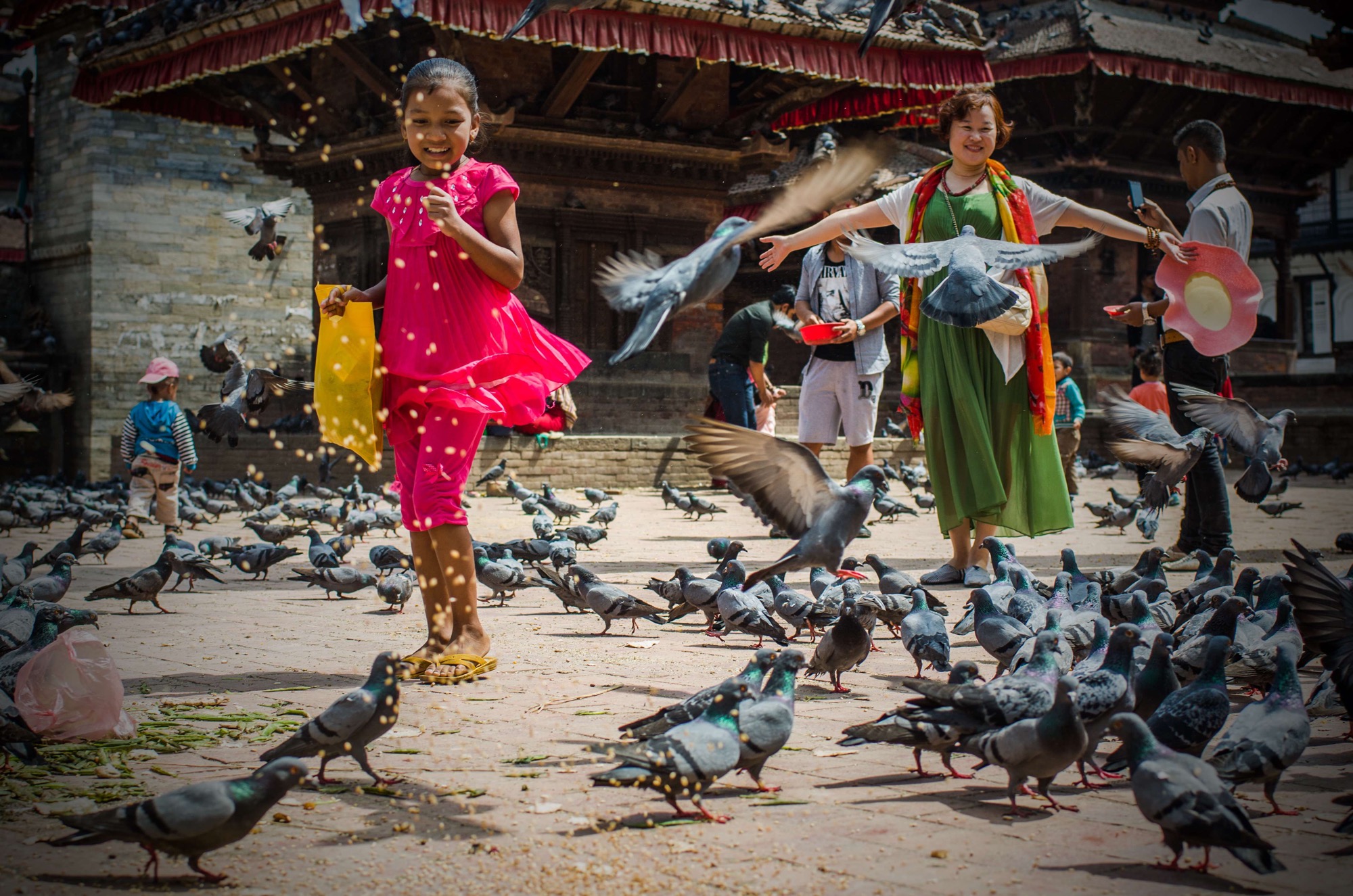 Feeding the pigeons, Durbar Square, Kathmandu, Nepal