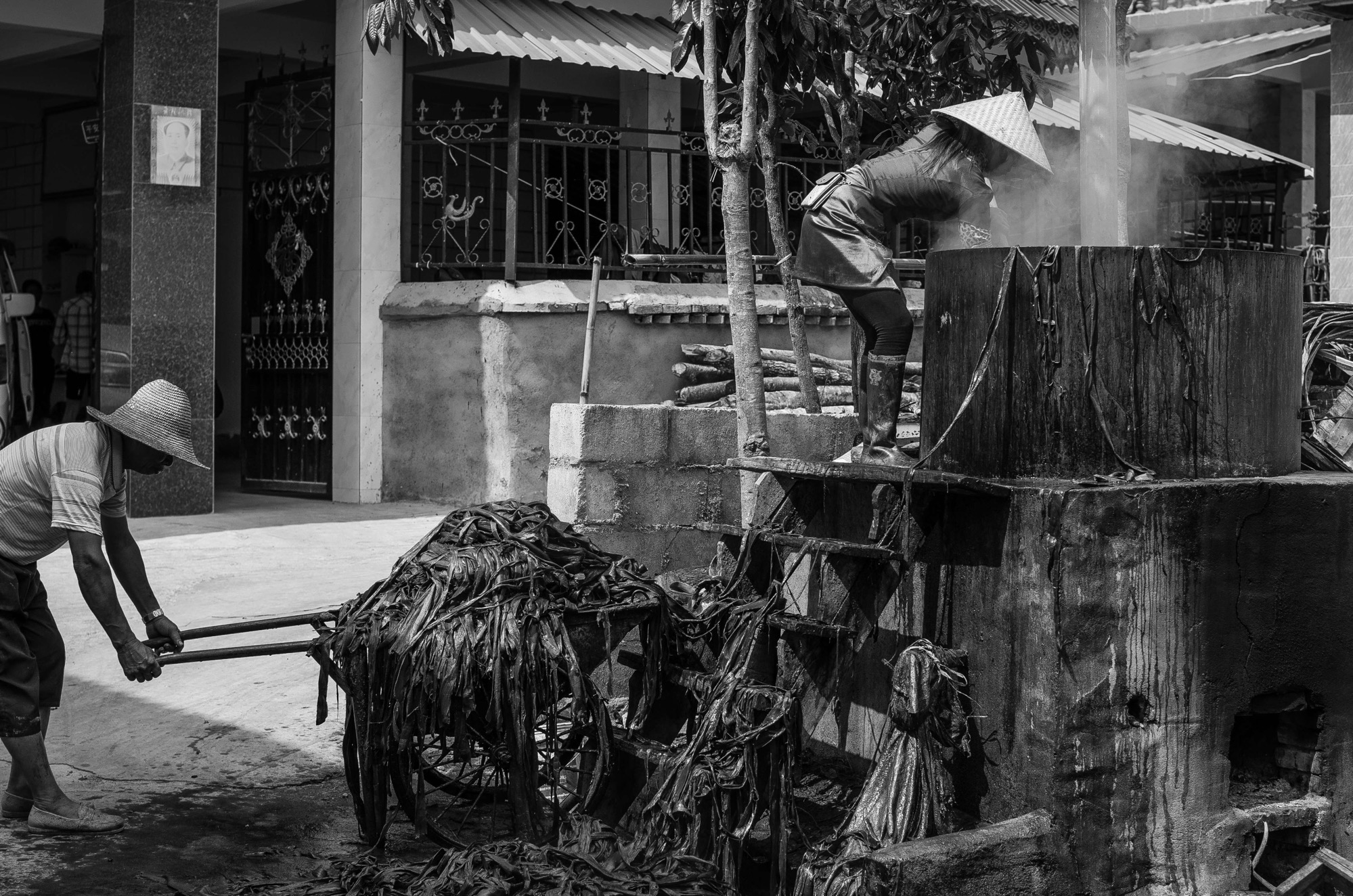 Over to a big concrete tank we see a huge vat of water being stirred to reveal a fine mist of pulp, proper pulp this time drifting to the surface like miso soup left to settle. Our local teacher does a nifty shimmy with a screen that looks like a fly-screen and expertly scoops up a delicate mist of pulp from the water that is now looking closer to paper than bark. It’s impressive to see but now we all have to have a go; I can’t help myself, I want to try first. With a hand on the screen our teacher graciously allows me to take the credit for all of her guidance and I soak it up shamelessly. Paper made this way is of course expensive and is nowadays only used for monk scriptures and wrapping pu’er tea; ahhhh, the circle becomes complete. We buy a pack mainly to contribute but it’s beautiful paper so I hope I can grab a sheet when we get home.