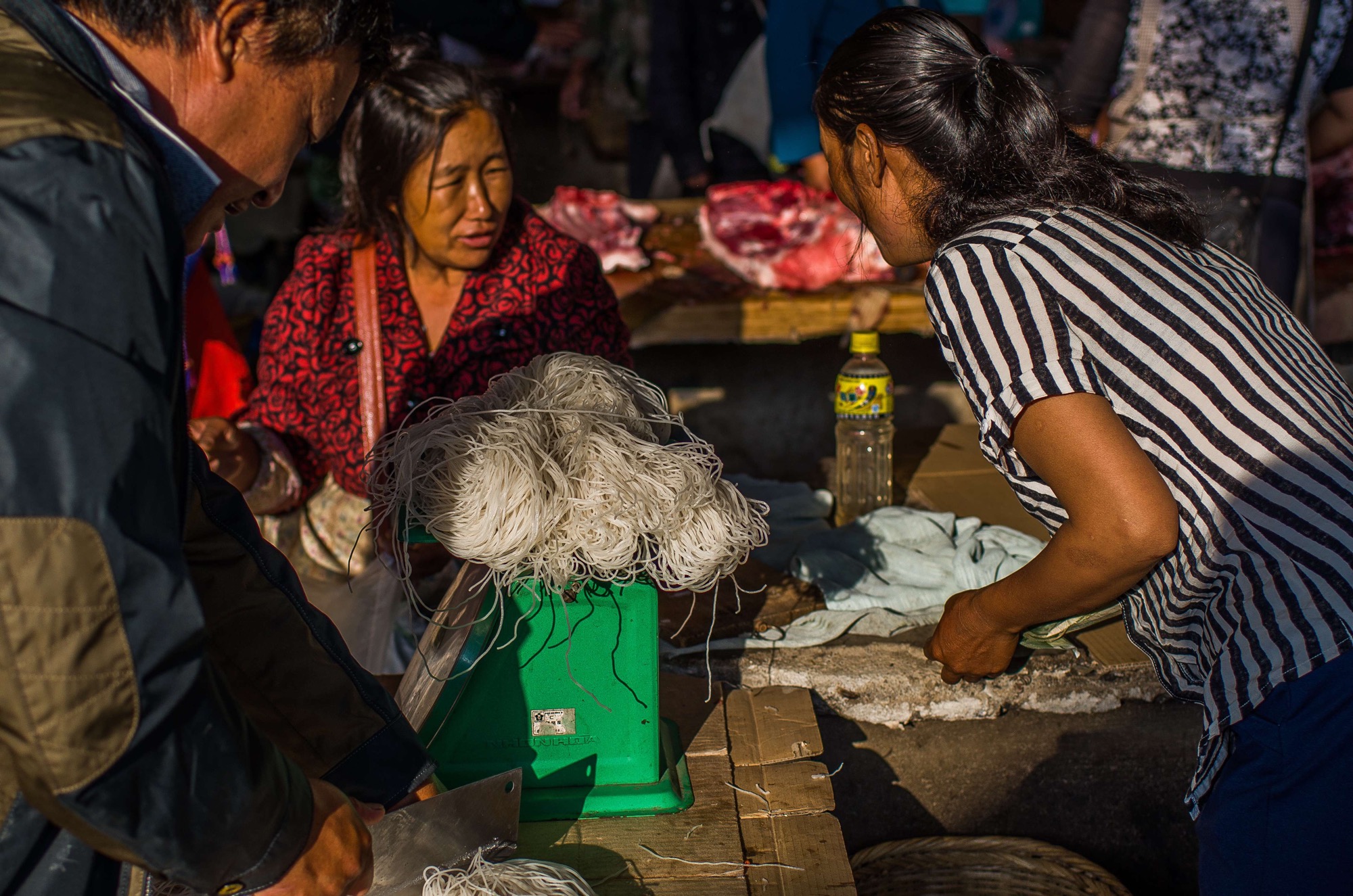 It’s morning time and in Zhanglang and the English translation here is more or less: market time. I’m on the back of the bike with Wendy and everyone else is crammed into the van with China-esque human rights considerations. Xiding township nearby is about ten minutes away and the G8 minus me pour out of the van like clowns in a circus and now embarks on the amble toward breakfast. So far we’ve been treated to sensational food and all of it largely in the form of two meals; massive varied share meals make up lunch and dinner while breakfast time can only be noodles. Food on hold though this is no casual vendor on a rug selling a few goodies, it’s the market version of a rave party: high intensity with an atmosphere that whacks you in the face as you step past the bouncer and through the curtains past the surly alternative cow in bag check. You can even buy glow sticks.