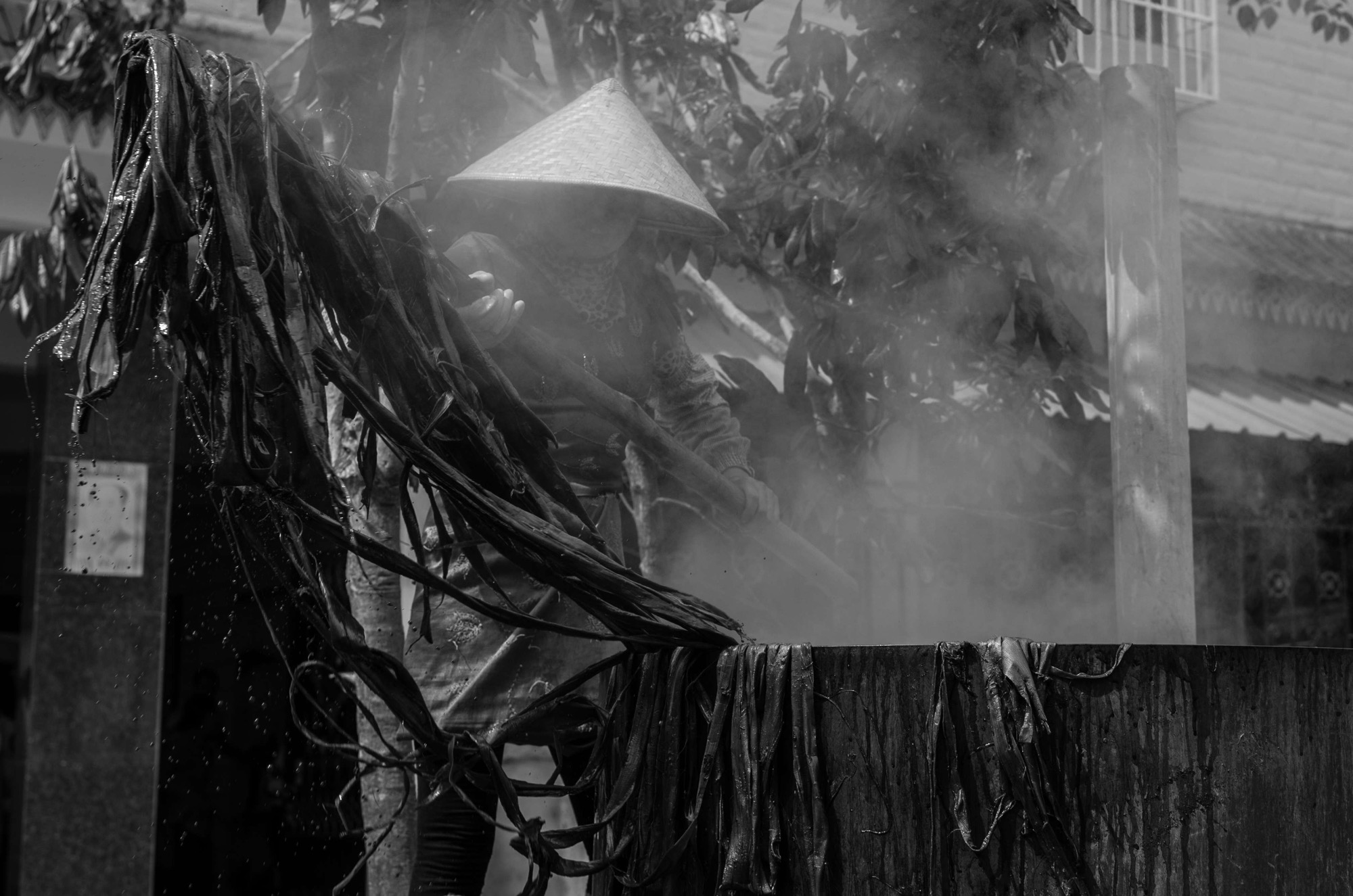 Boiling the mulberry tree bark , the first step in making paper to wrap pu’er tea.