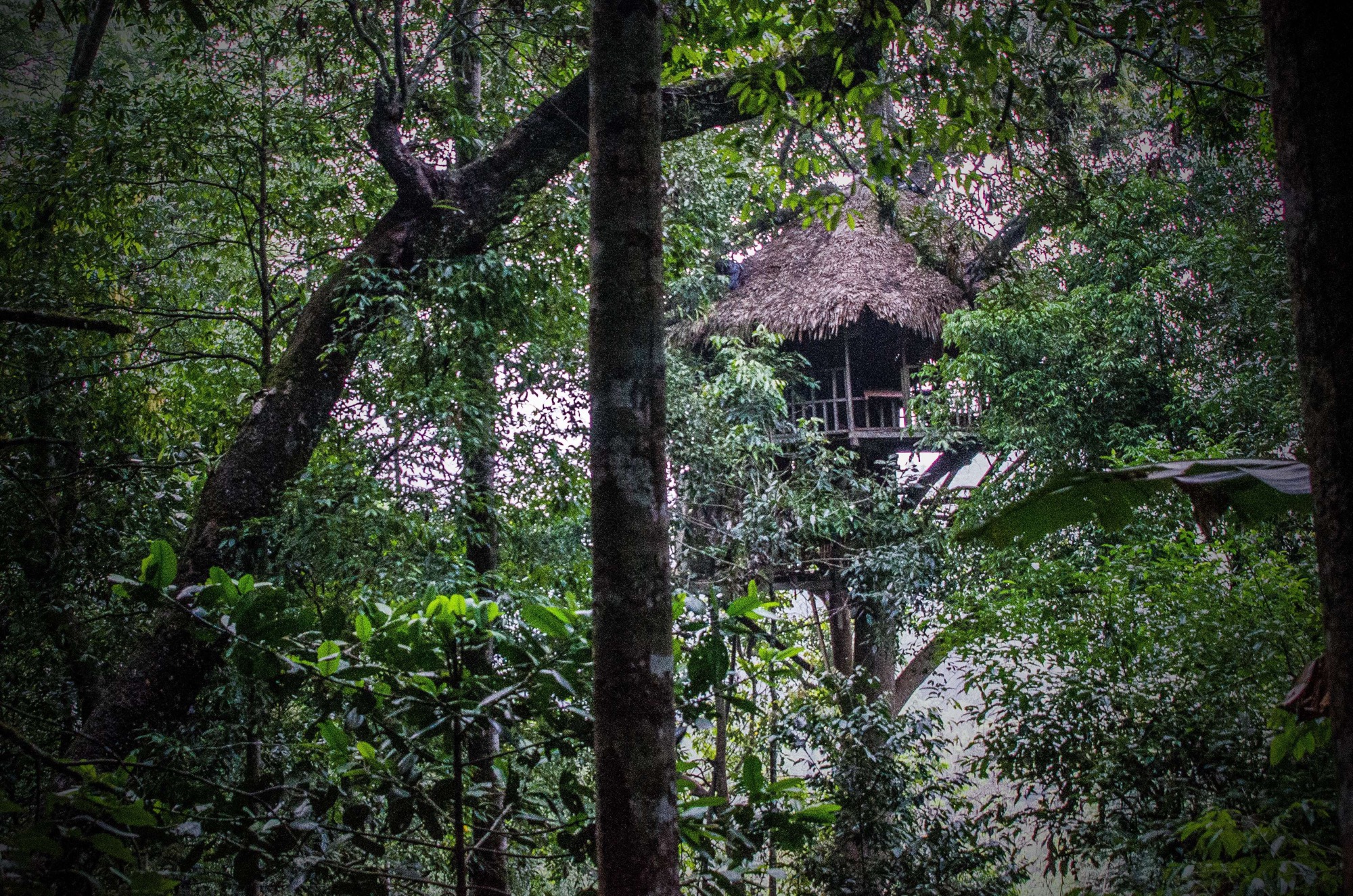 We tuck into dinner with gusto, tasty vegetables, chicken and sticky rice are followed by fresh fruit; Charlie and I even manage a beer to make perfection a little more perfect. Wide eyes and astonished exuberance are the standard fare here, possibly the best feature of this place is the bathroom; never thought I’d say that on this trip. On a lower platform a shower rains down overhead only to fall tumbling to the earth like rain below our feet. We cast our eyes out from the treetops that are our companions and stare down to the river running wild below us barely carving a path through a jungle that wants to clamber over it from both sides. There’s no window here, just a cool breeze while we shower floating above the jungle: it’s not just another best ever, there’s surely nothing the equal to this.