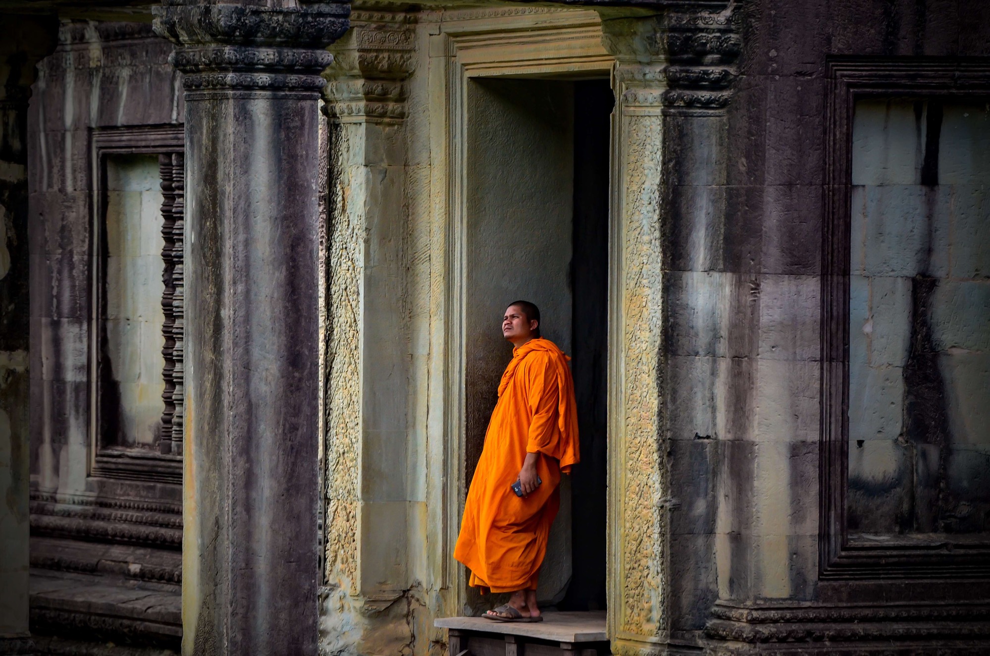 Stone erodes but life continues as it has for centuries at Angkor Wat, Siem Reap