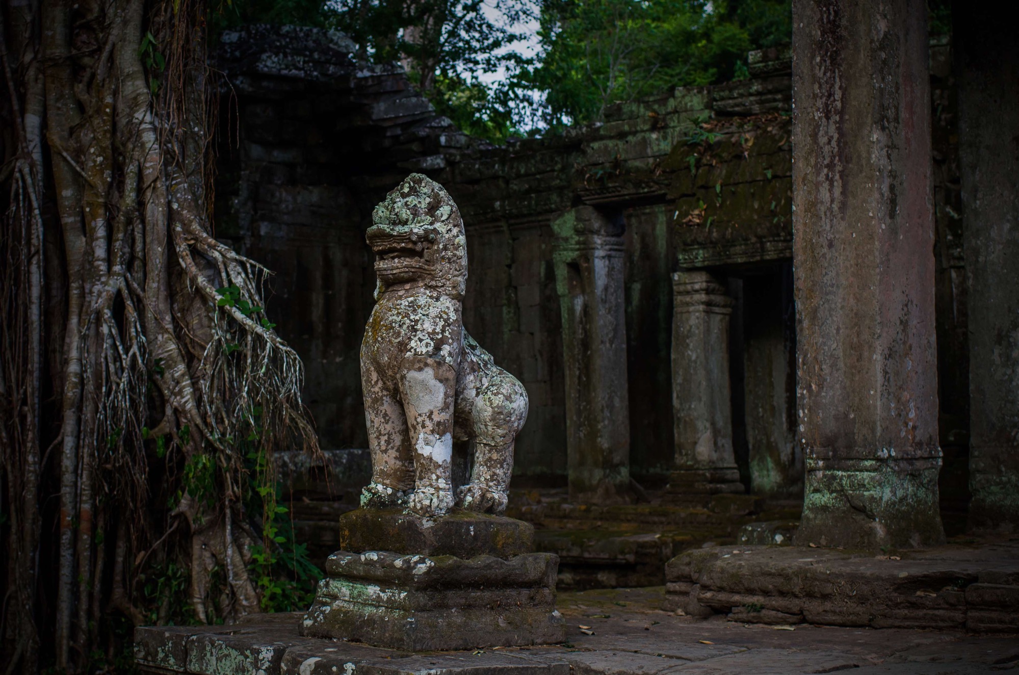 The Angkor temple of Preah Khan, still guarded by lions , Siem Reap