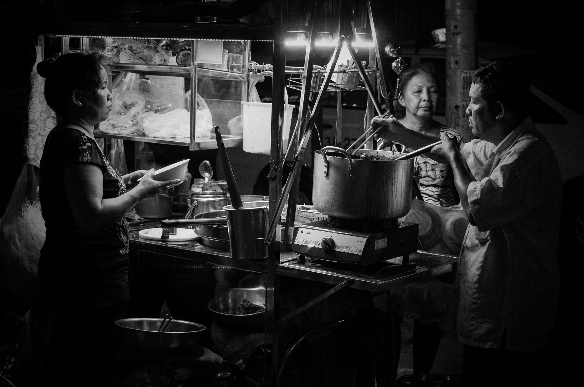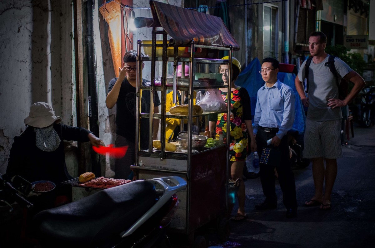 The ramshackle simplicity of street food anywhere is its charm and nowhere hits that nail on the head better than Vietnam, on first glance at least. A cutaway tin can, a piece of iron roofing or a beaten pot that had seen better days decades ago yet still goes strong are the tools of the trade; nothing that we would call a cooking implement seems appropriate. From this discarded world the greatest bounty comes; again saying that the food is delicious seems rude and ignorant, of course it is, it’s the setting and lifestyle that truly hooks into our flesh and pulls us in. The idea of ‘behind closed doors’ seems a distant notion, the world here shares the world, it laughs together, cries together and all the while it eats together.In our culture we laud the romance of a family dinner table, a place to connect, share and often do what we define as being family. What if you needed no sanctuary of space behind closed doors, no big table, no confinement to a Sunday afternoon time-slot? What if we could take all that is held dear and cherished about the family dinner table and not only make it every meal but share it beyond our nearest clan, with the world? Love and companionship is extended to a broader society on an open invitation to come and share with the universal accessibility of a fruit box or upturned paint can chair; it’s not as idealistic as you might think.