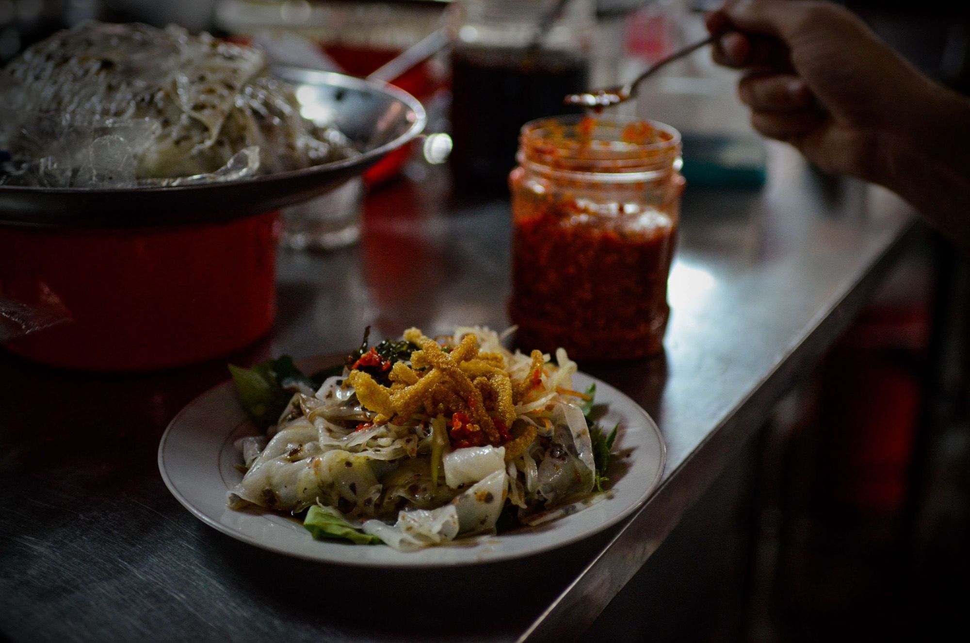 Bánh Cuôn Lón served in Hoi An central market, Vietnam.