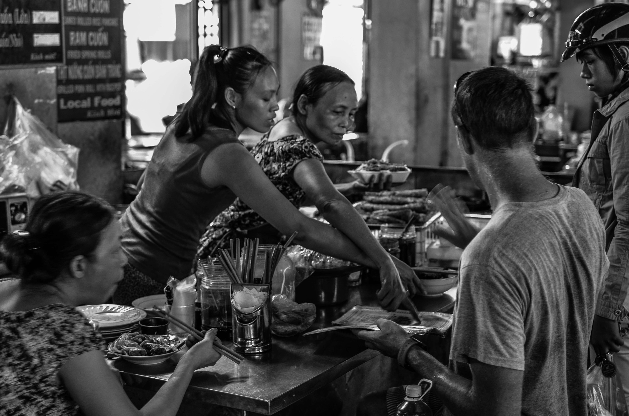 Typically we mix low brow pornography acting with meal time in an involuntary show of aw’s and ah’s, the Bánh Cuôn Lón madam is not only an effective strong arm around these parts, she knows all the right buttons to press. Sadly this is our last visit to the lady of the house, tomorrow we’re off to Hue, more culinary adventures and the Hai Van Pass. We leave a stack of cash on the counter and she bids us farewell as if we’ll return tomorrow even though she knows we won’t return; she’s a dignified woman and a customer is a customer always.