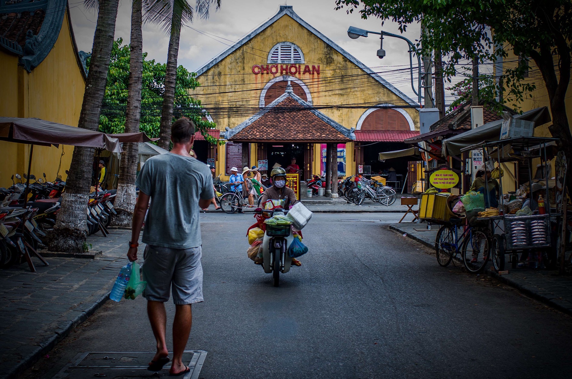 The chorus of the Hoi An market choir rises over baskets of herbs and small little pots burning incense in the morning, the cries are raucous and insistent but lacking in urgency; it’s not so much a demand but an introduction. There may be a formidable army before us but there’s breakfast behind, good luck to the defiant ranks trying to resist this charge. Predictably they’re no contest as we carve our way like cavalry through routed infantry. Passing through the threshold the whispers have gotten around, today we’re a no-go zone for the usually feisty ladies on the stalls, today we stroll through the melee with mafia like protection; the Bánh Cuôn Lón madams authority blesses us with untroubled passage.